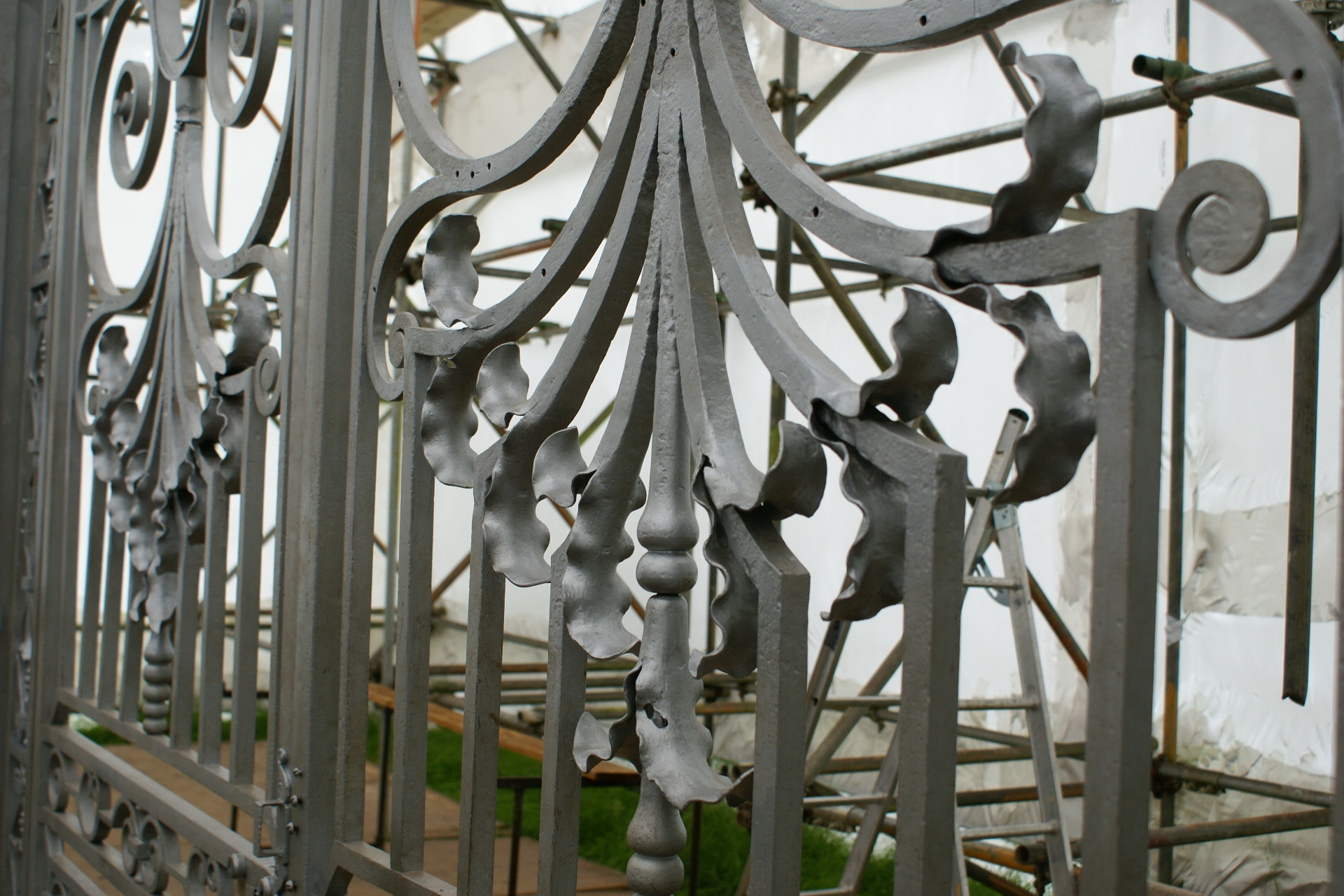 The photo of the gates above is another good example of the importance of getting it right. Many of the leaves were in a terrible state if they were there at all. It is important as I have stated in previous Blogs not to over restore and to hold back replacing components just because they look a bit old or worn. These gates are old and should retain an aged dignity, so it a component is fit for the purpose it was intended for…. it stays! If you look carefully the lowest leaf in the foreground has a corrosion hole in it. The decision to leave in situ, with no patch repair and only to clean it, was because it was strong enough for service and more importantly it was one of the few originals left on this part of the gate that still maintained its original form. The rest on the leaves you see are for the most part are reproductions or partial repair.